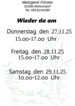 und Samstag den 29.11.25 von 1o.oo-12.oo Uhr